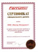Сертификат официального дилера "Ferrum" |