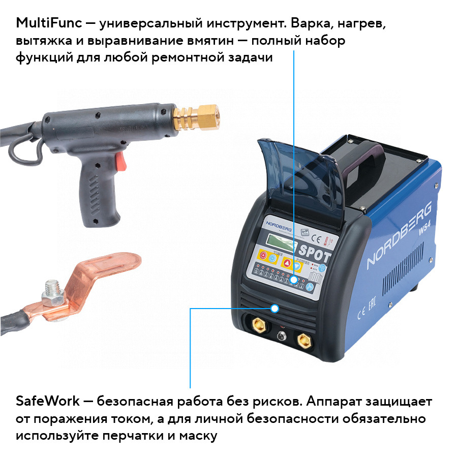 Позволяет быстро и безопасно восстанавливать форму кузовных деталей, минимизируя повреждения соседних участков, и отлично подходит для кузовных мастерских, СТО и сервисных центров.