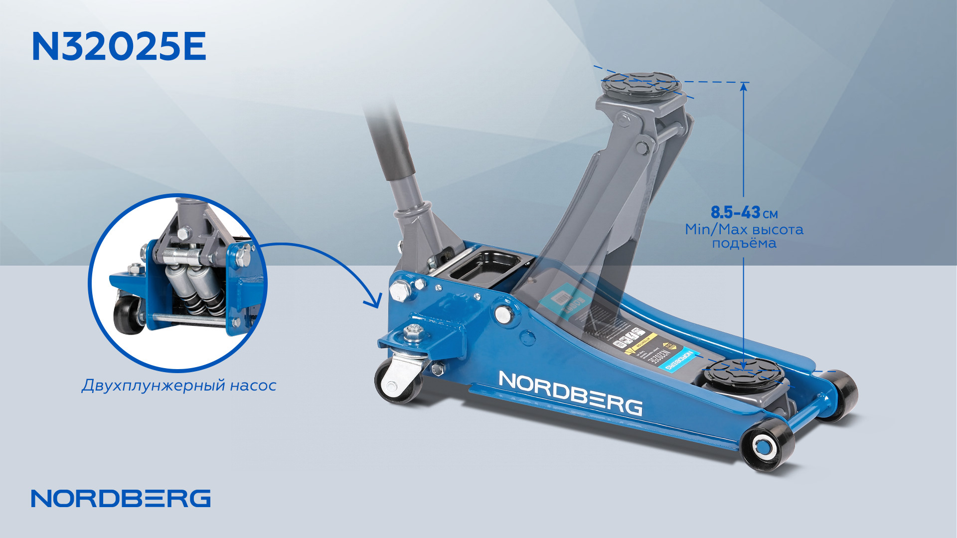 Подкатной домкрат с резиновой насадкой NORDBERG N32025E – надежное, удобное и безопасное оборудование для подъемных работ в процессе ремонта и обслуживания автомобиля.