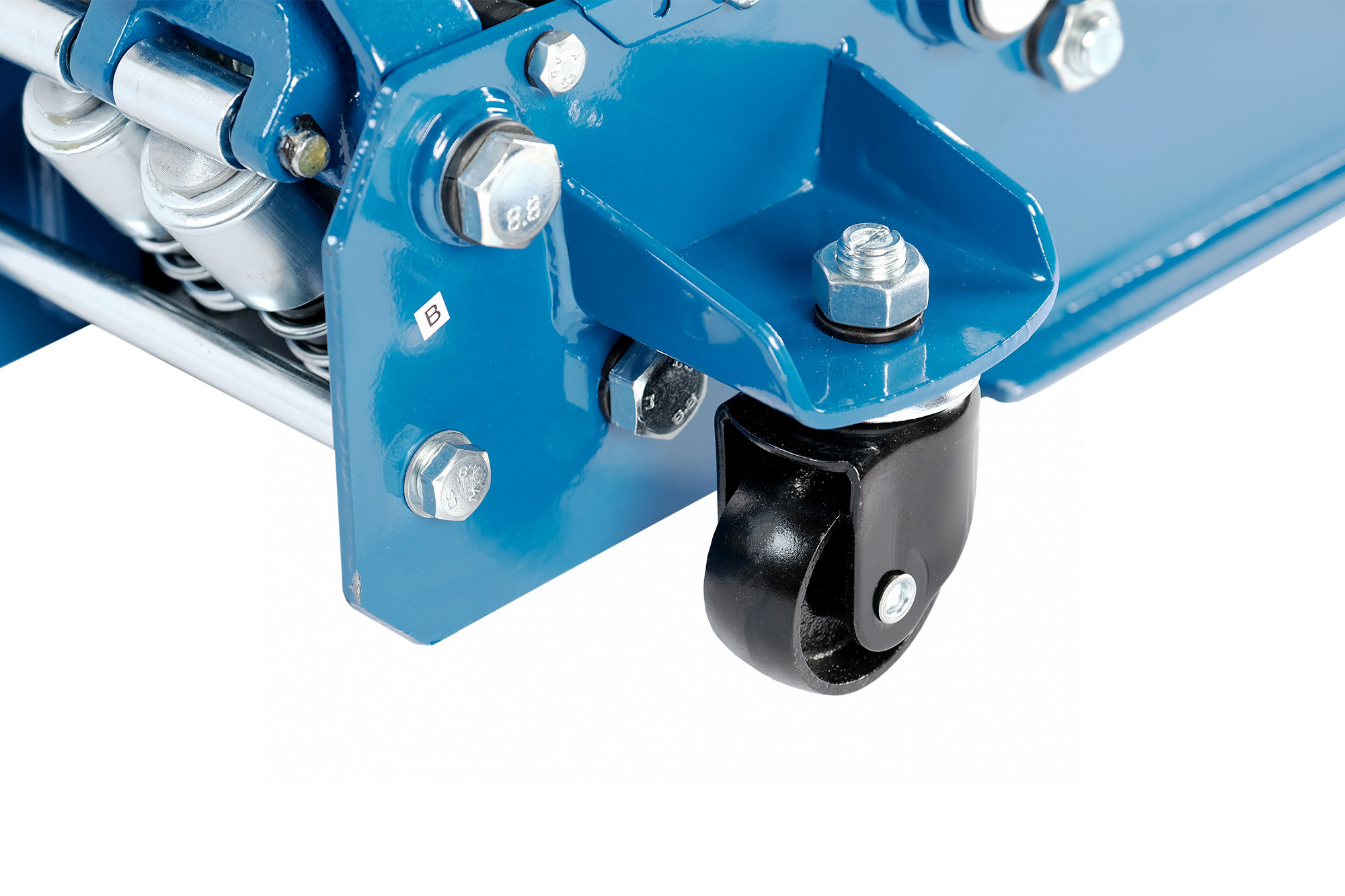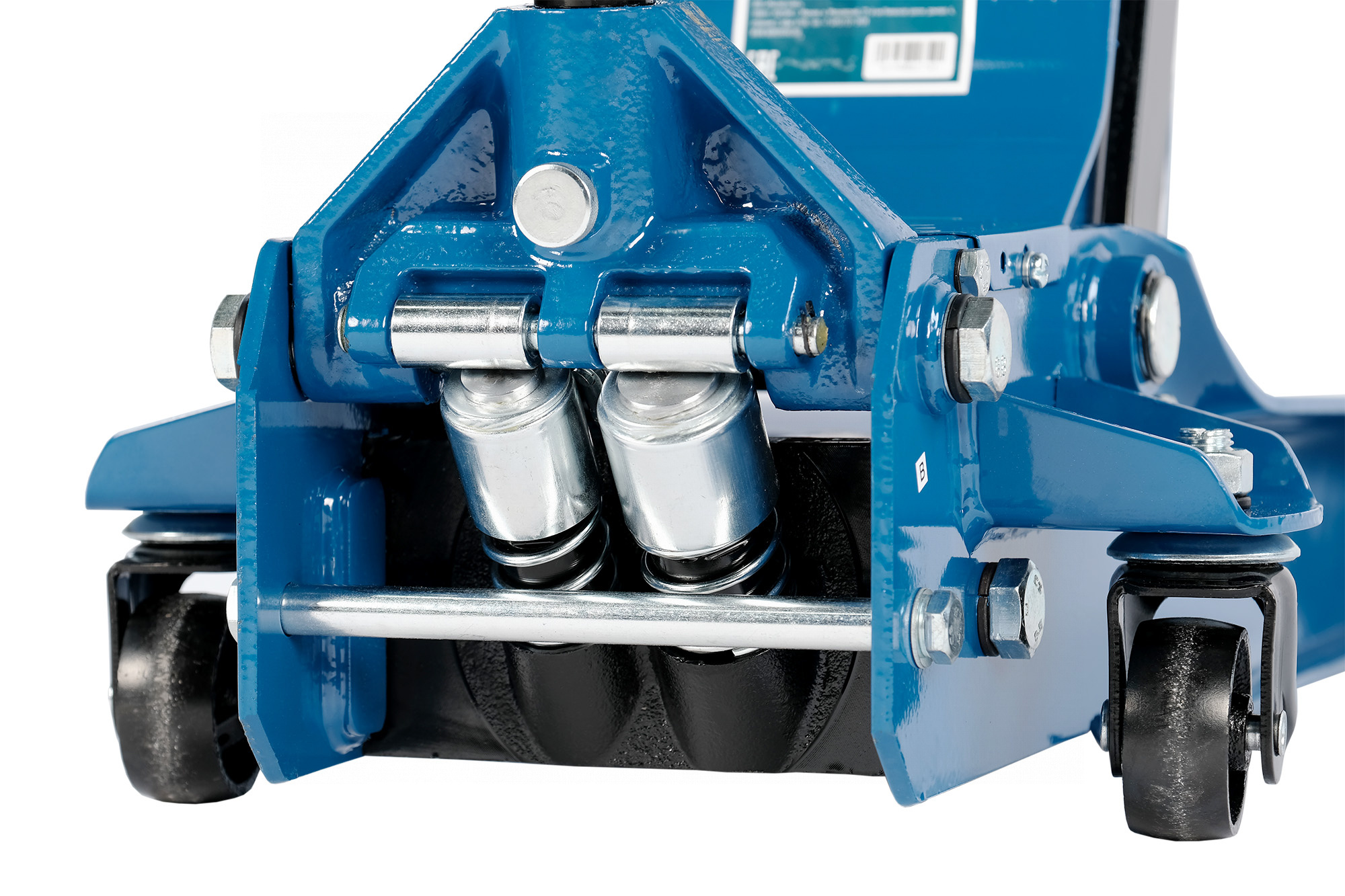 Благодаря конструкции с маневренными колесами домкрат удобно перемещать по площадке и подкатывать под автомобиль