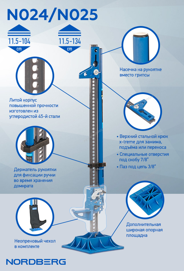 Хай джек NORDBERG N024 – простое универсальное решение для обслуживания автомобилей, при аварийных ситуациях или смене колес.