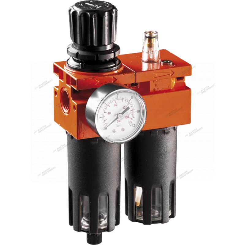 Профессиональный модуль подготовки воздуха изготовлен из оцинкованного и окрашенного алюминиевого сплава, колба из поликарбоната, бронзовый фильтрующий элемент. Лубрикатор снабжен регулировкой подачи масла.