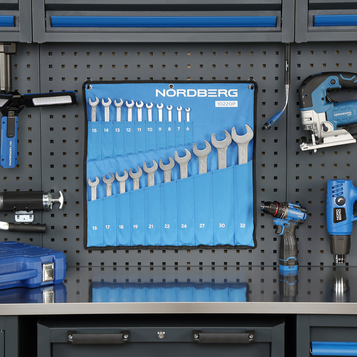 NORDBERG 10220P — универсальный набор для профессионалов, идеально подходящий для гаражных работ, автосервисов и бытового применения.