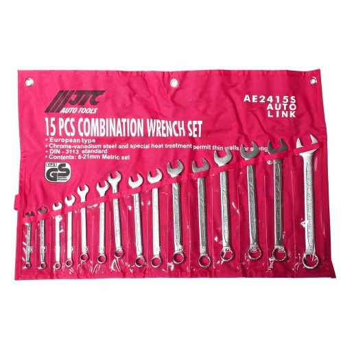 Набор комбинированных ключей JTC-AE2415S содержит 15 предметов. Применяются для выполнения любых видов работ с крепежом - как дома, так и в авто-слесарных мастерских, станциях технического обслуживания, на производстве.