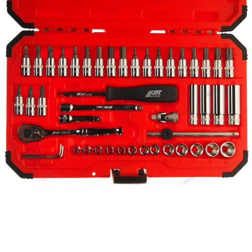 Набор торцевых головок с принадлежностями JTC-H247M предназначен для работы с крепежом различного вида. Инструмент отлично подойдет для автослесарной мастерской, станции технического обслуживания, производства и в домашних условиях.