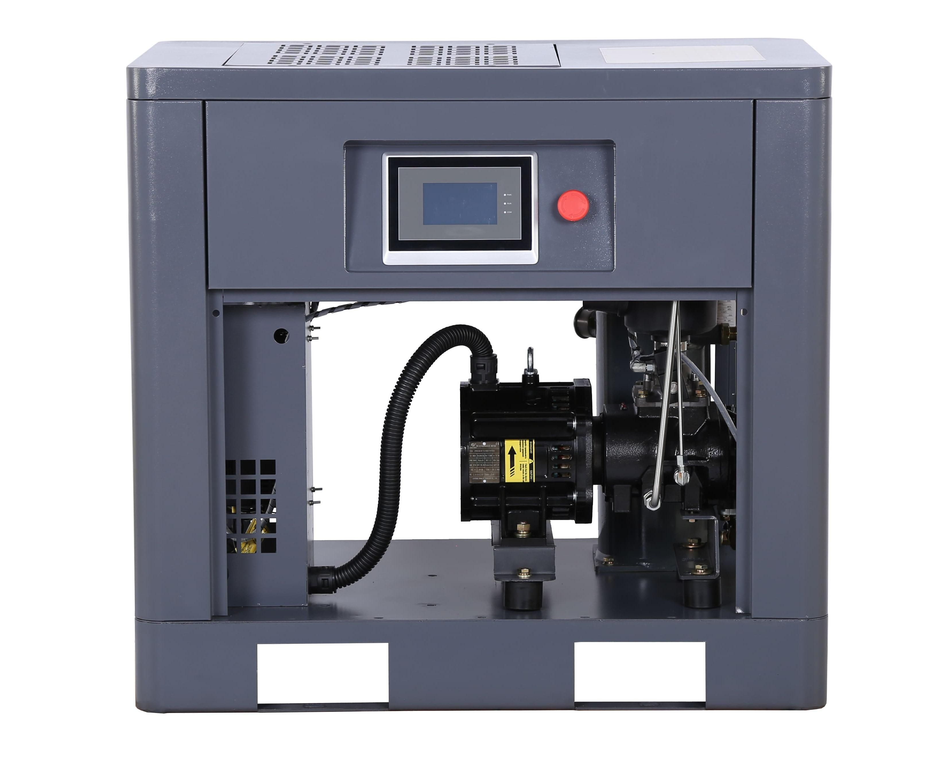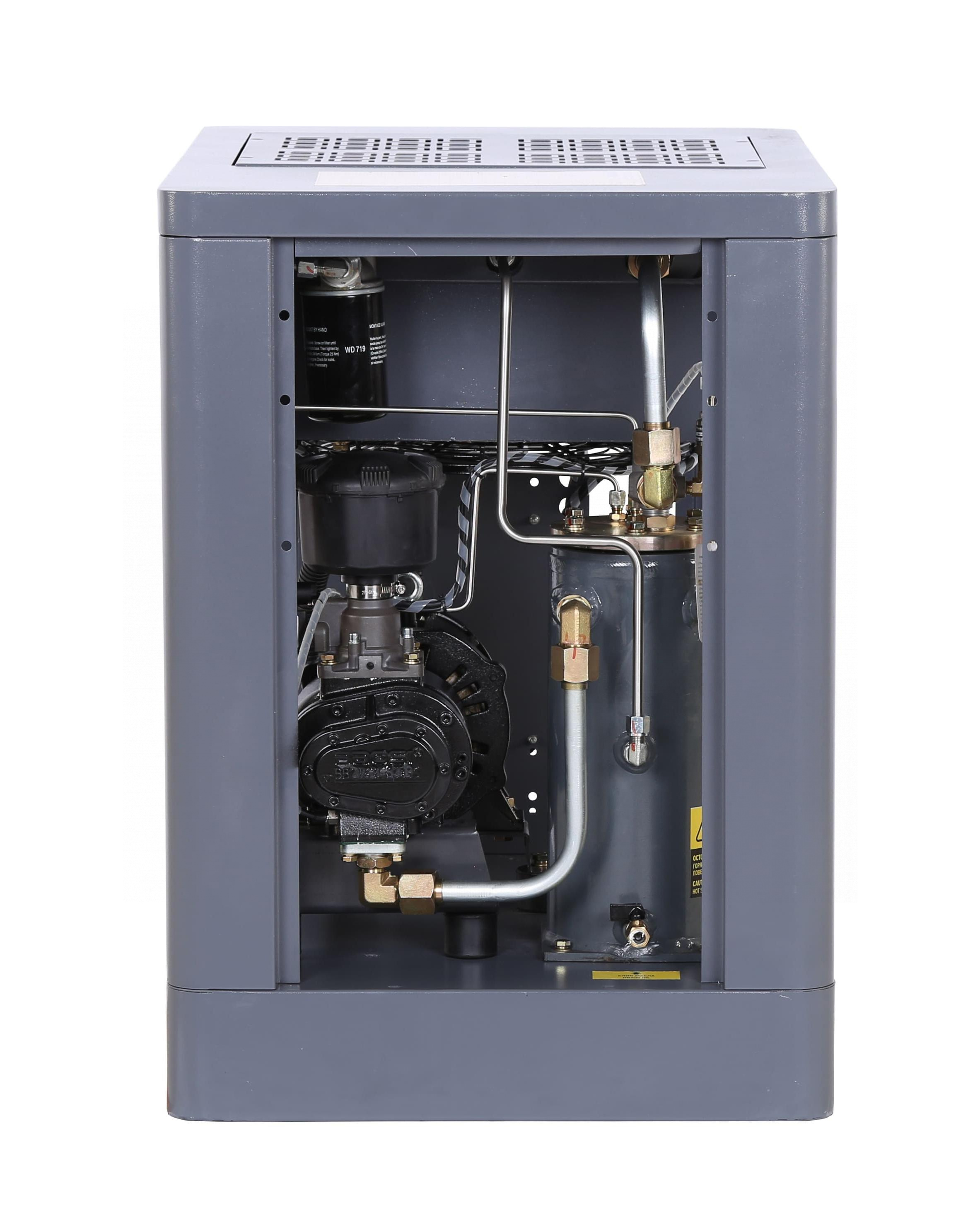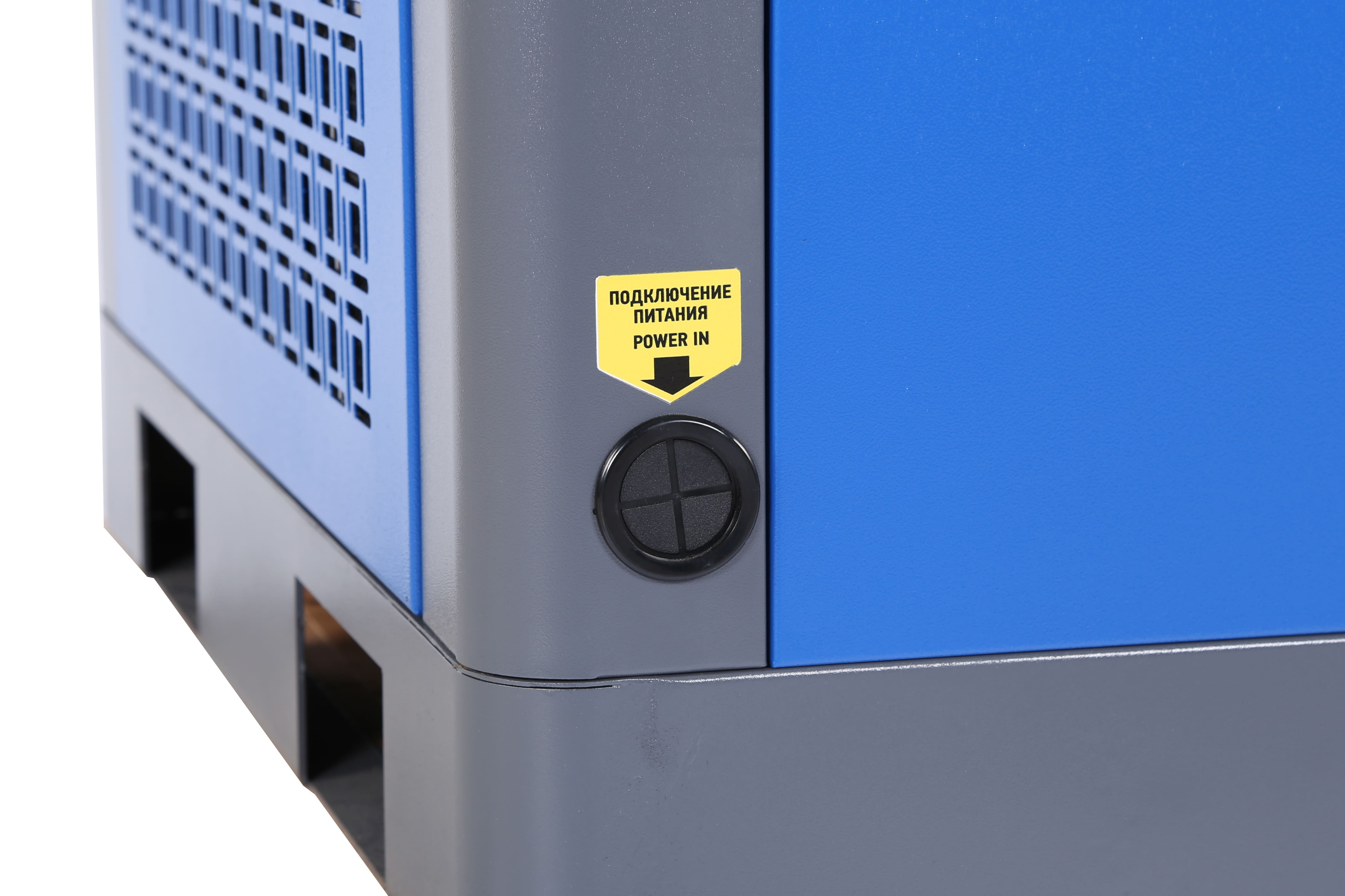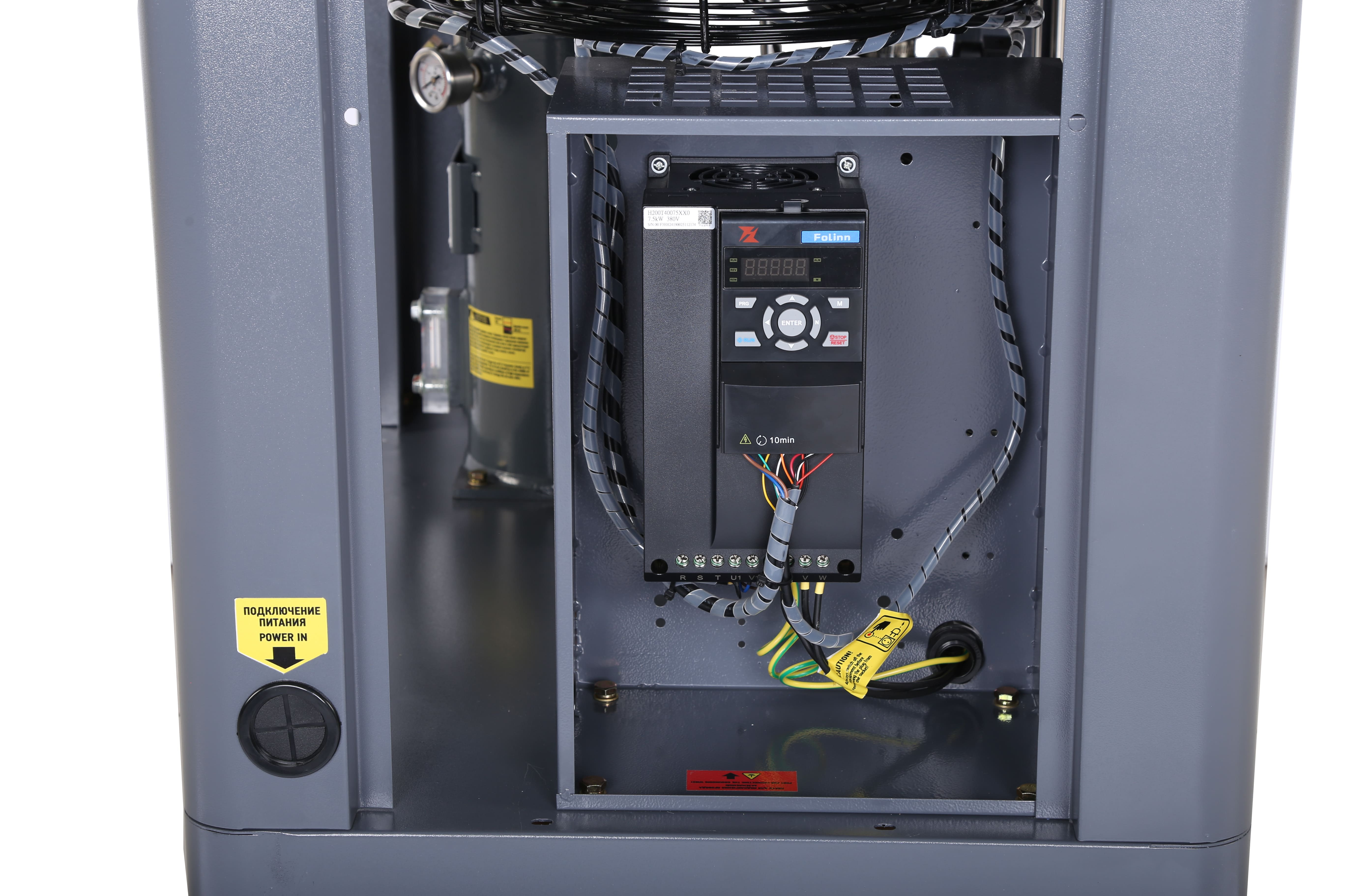 Предназначен для выработки и подачи сжатого воздуха в пневмосистемы. Компрессор обеспечивает производительность 960 л/мин при давлении до 10 бар, работает от сети 380 В и оснащён частотным преобразователем.
