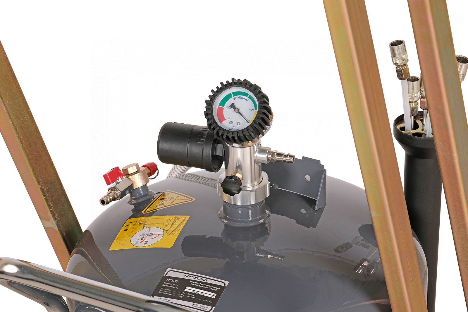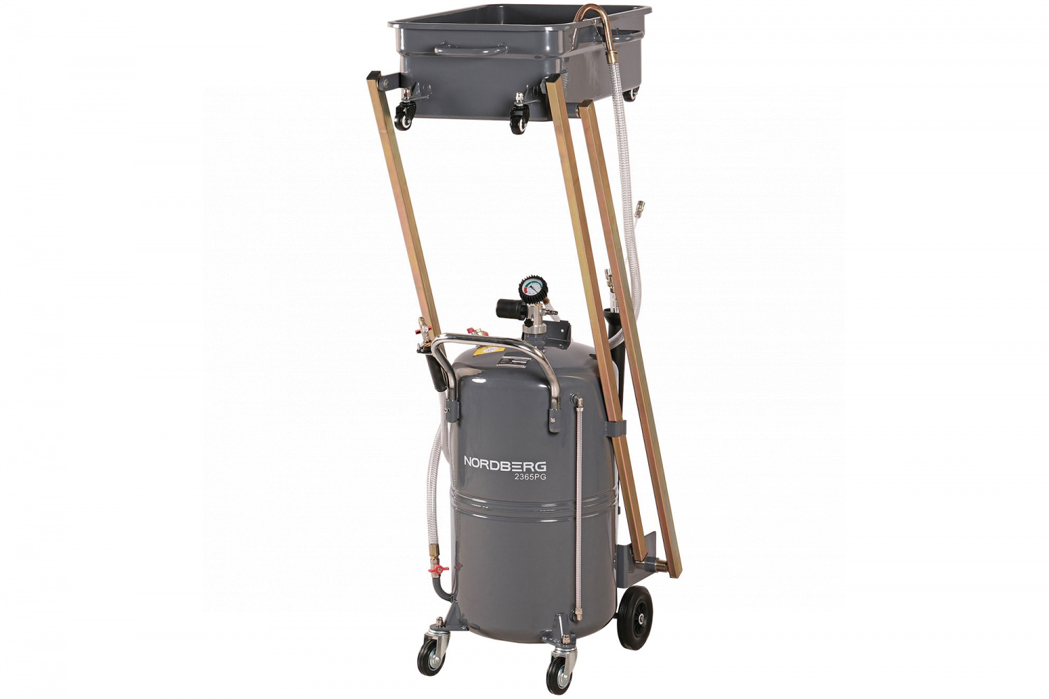Универсальная пневматическая установка для сбора масла NORDBERG 2365PG позволит быстро и качественно провести работы по техническому обслуживанию автомобиля.