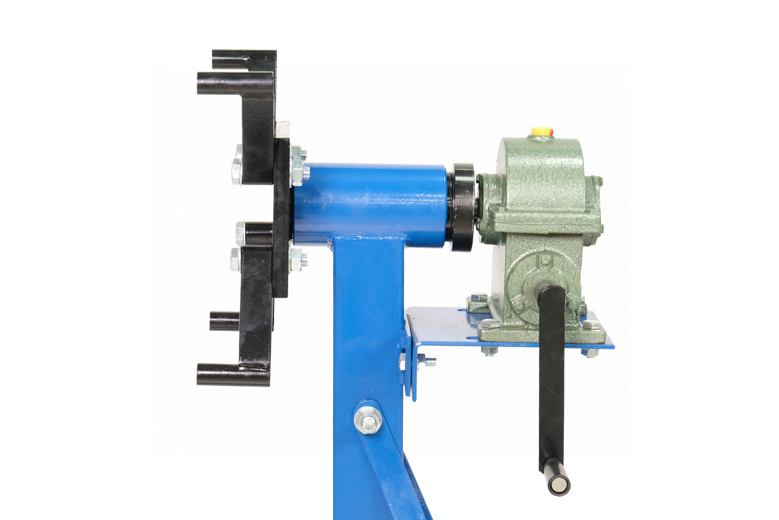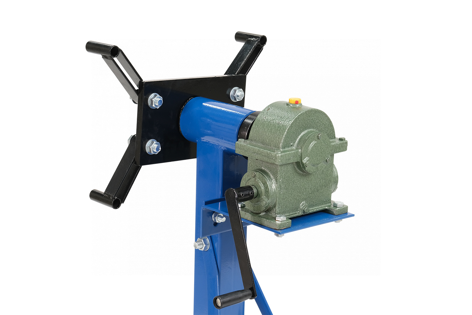 - Оснащен редукторным механизмом вращения вывешенного агрегата. Это позволяет повернуть обслуживаемый агрегат под любым углом и зафиксировать в этом положении без дополнительного стопора, что обеспечивает удобство работы при приложении усилия на вывешенный агрегат во время работы с его компонентами.