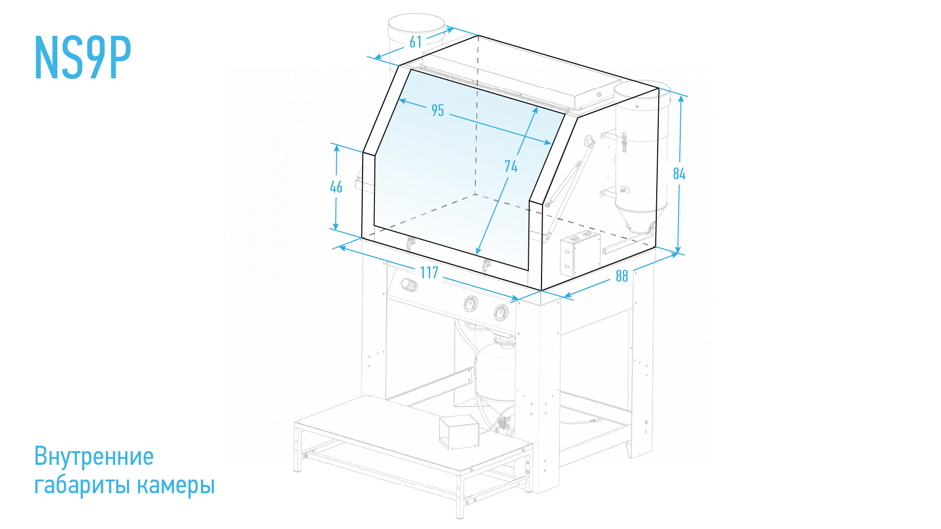 | Размер рабочей камеры с поддоном, см | 118x89x85 |