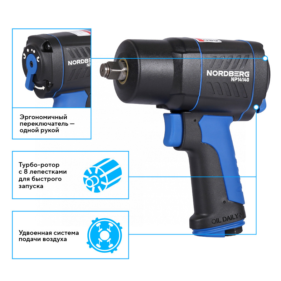 NORDBERG NP14140 — мощный, лёгкий и удобный пневмогайковёрт, идеально подходящий для автосервисов, шиномонтажей и гаражного применения.