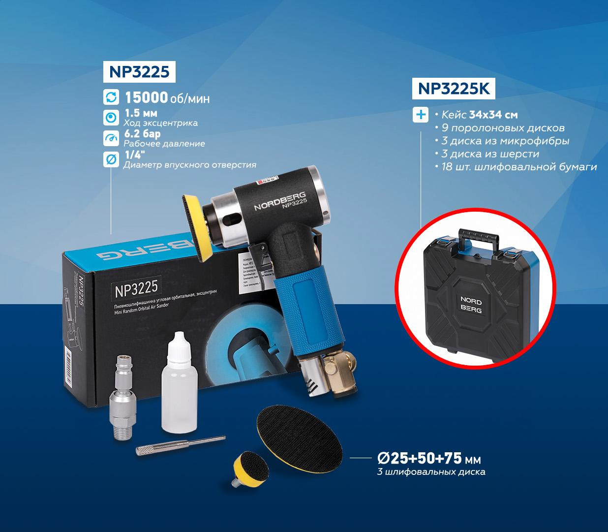 Пневматическая шлифовальная машинка NORDBERG NP3225 позволит бережно и эффективно очистить различные автомобильные детали.