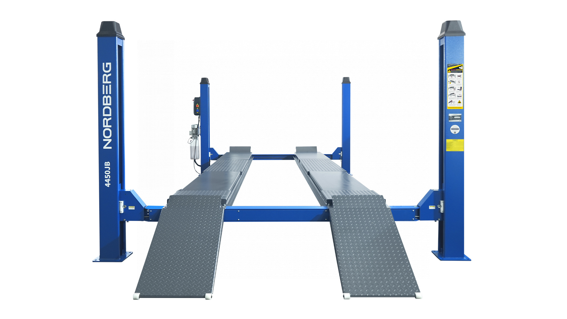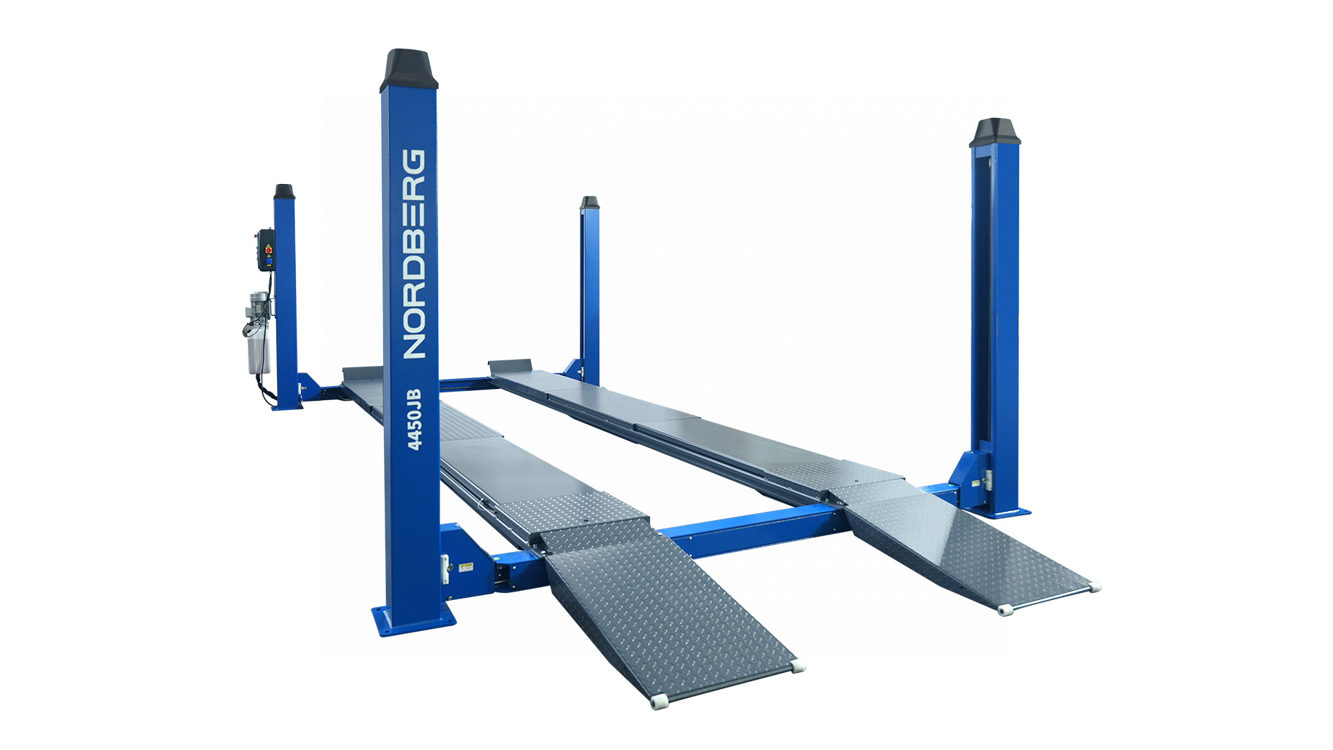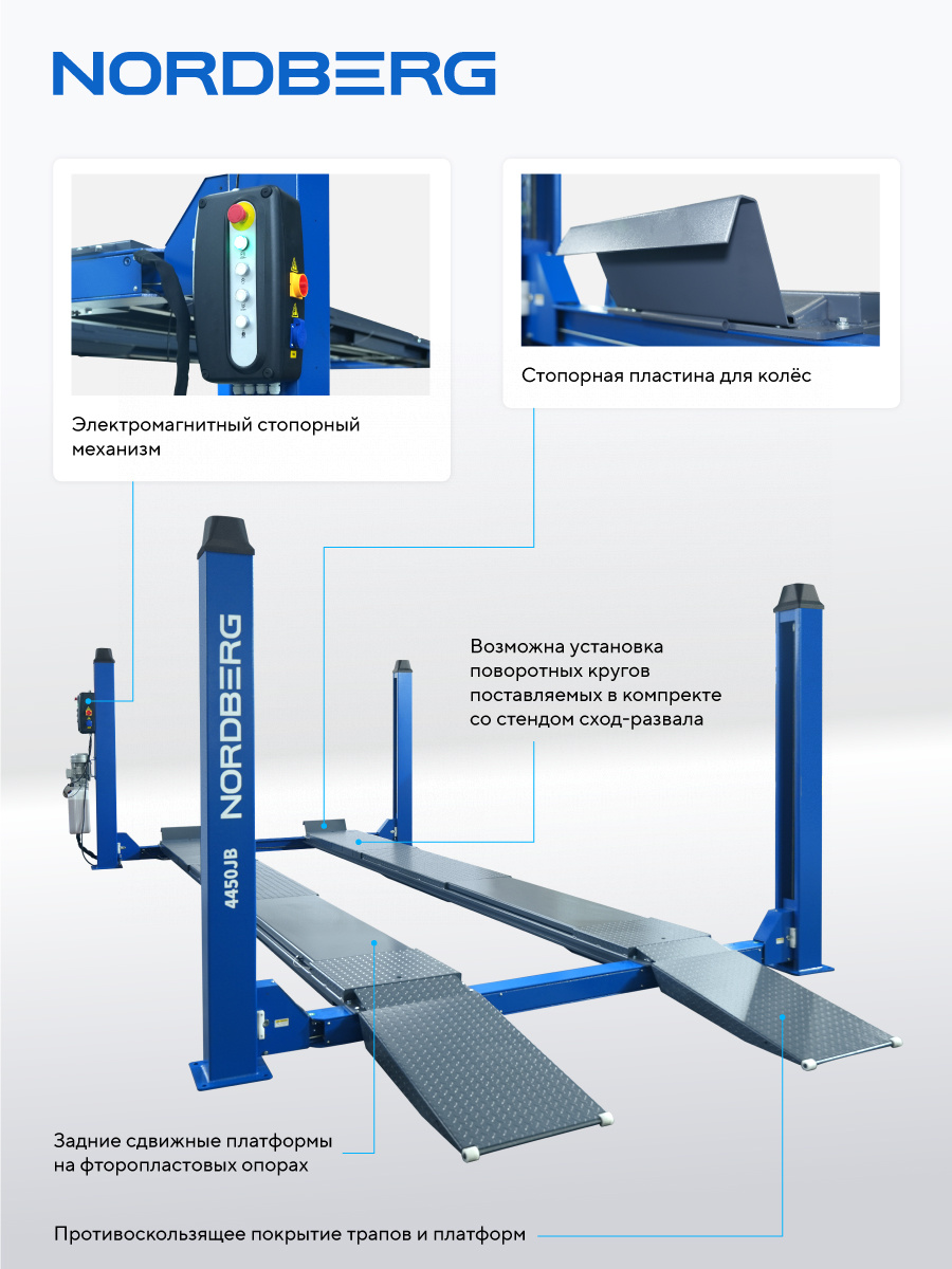 NORDBERG 4450J_EB — профессиональный четырёхстоечный подъёмник, сочетающий высокую грузоподъёмность, точность и безопасность. Оптимальное решение для автосервисов, где требуется эффективная и качественная работа с подвеской и ходовой частью.