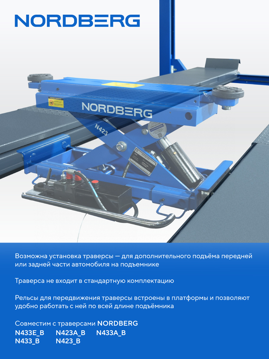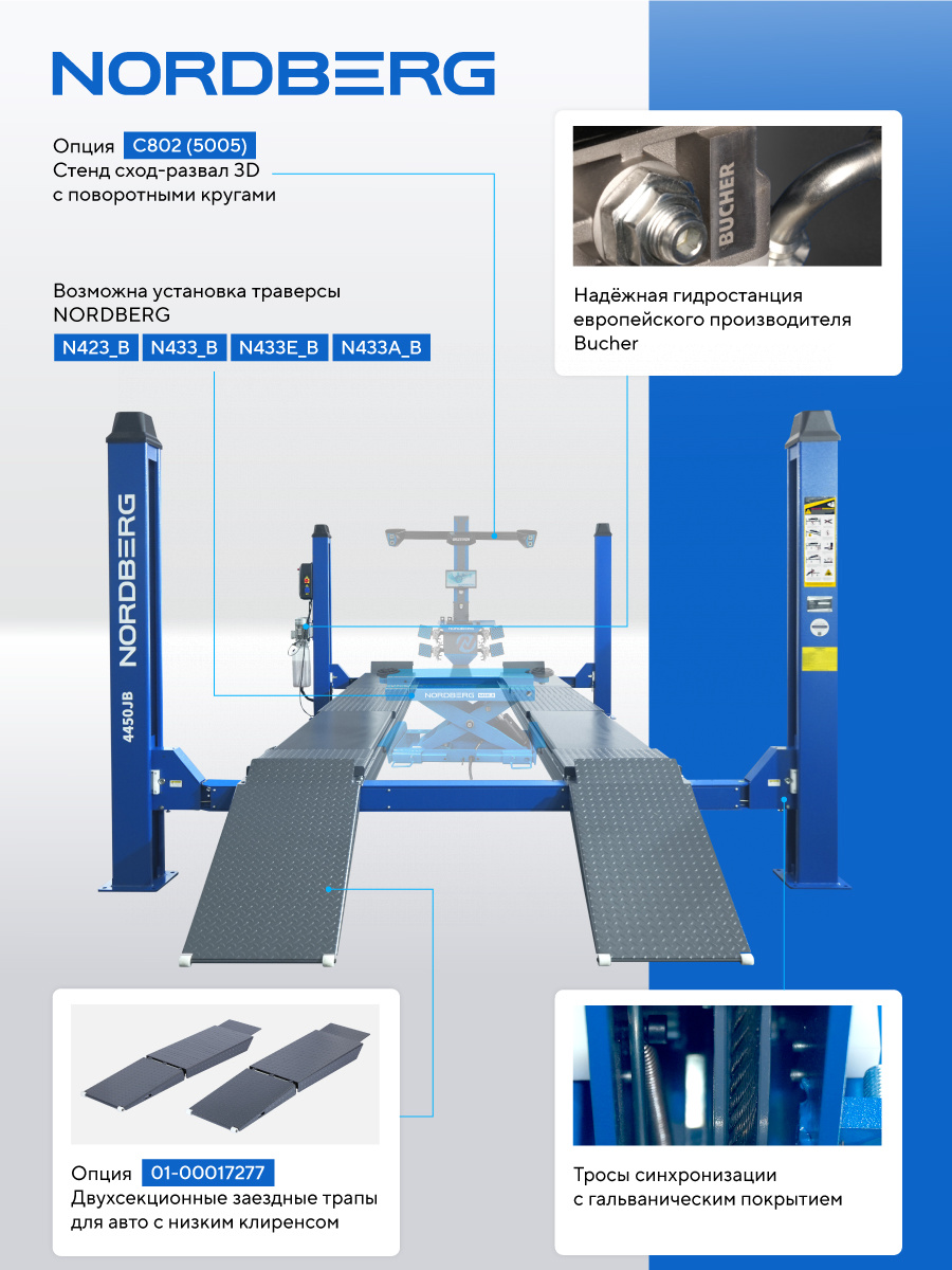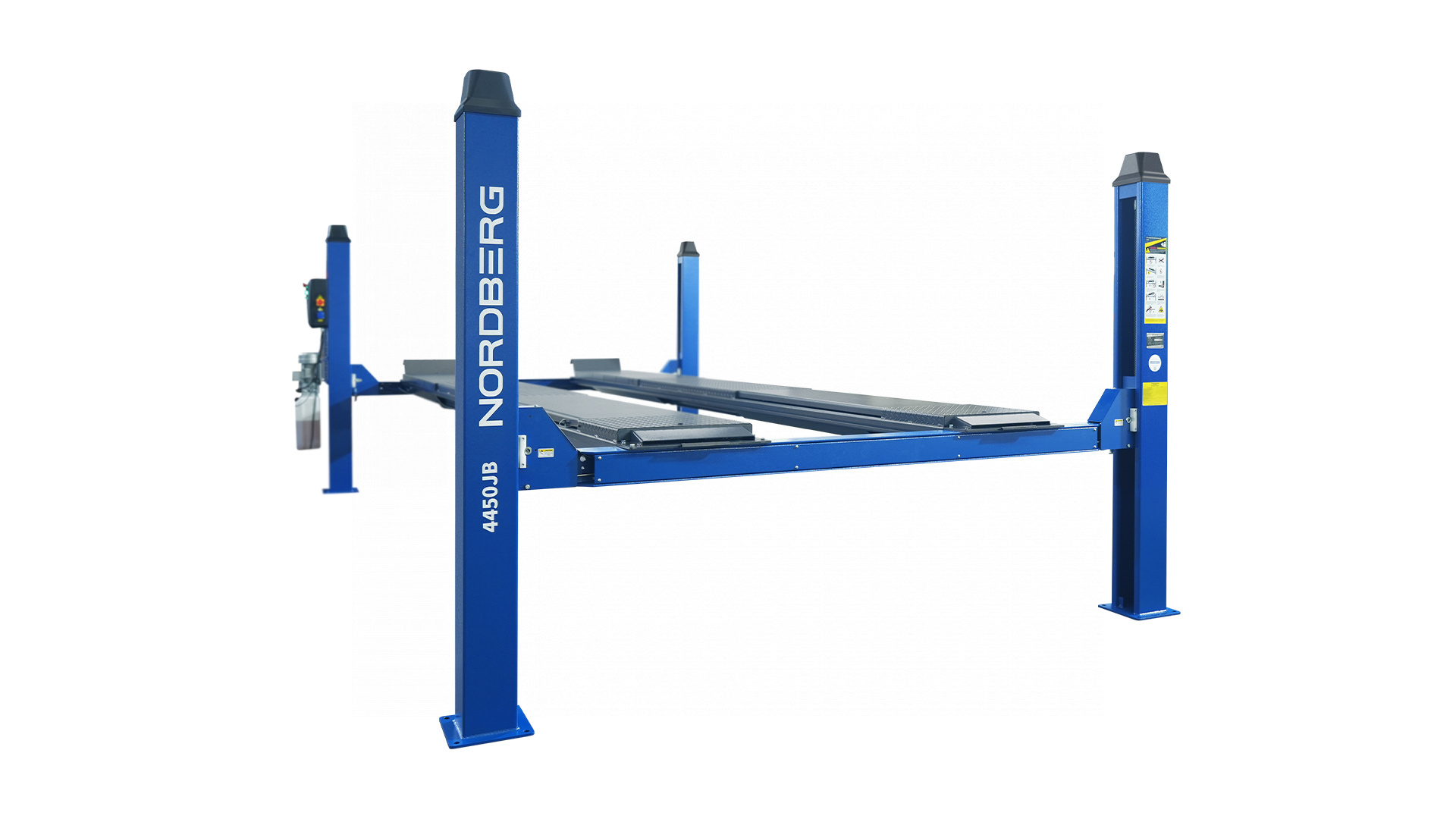 NORDBERG 4450J_EB — профессиональный четырёхстоечный подъёмник, сочетающий высокую грузоподъёмность, точность и безопасность. Оптимальное решение для автосервисов, где требуется эффективная и качественная работа с подвеской и ходовой частью.