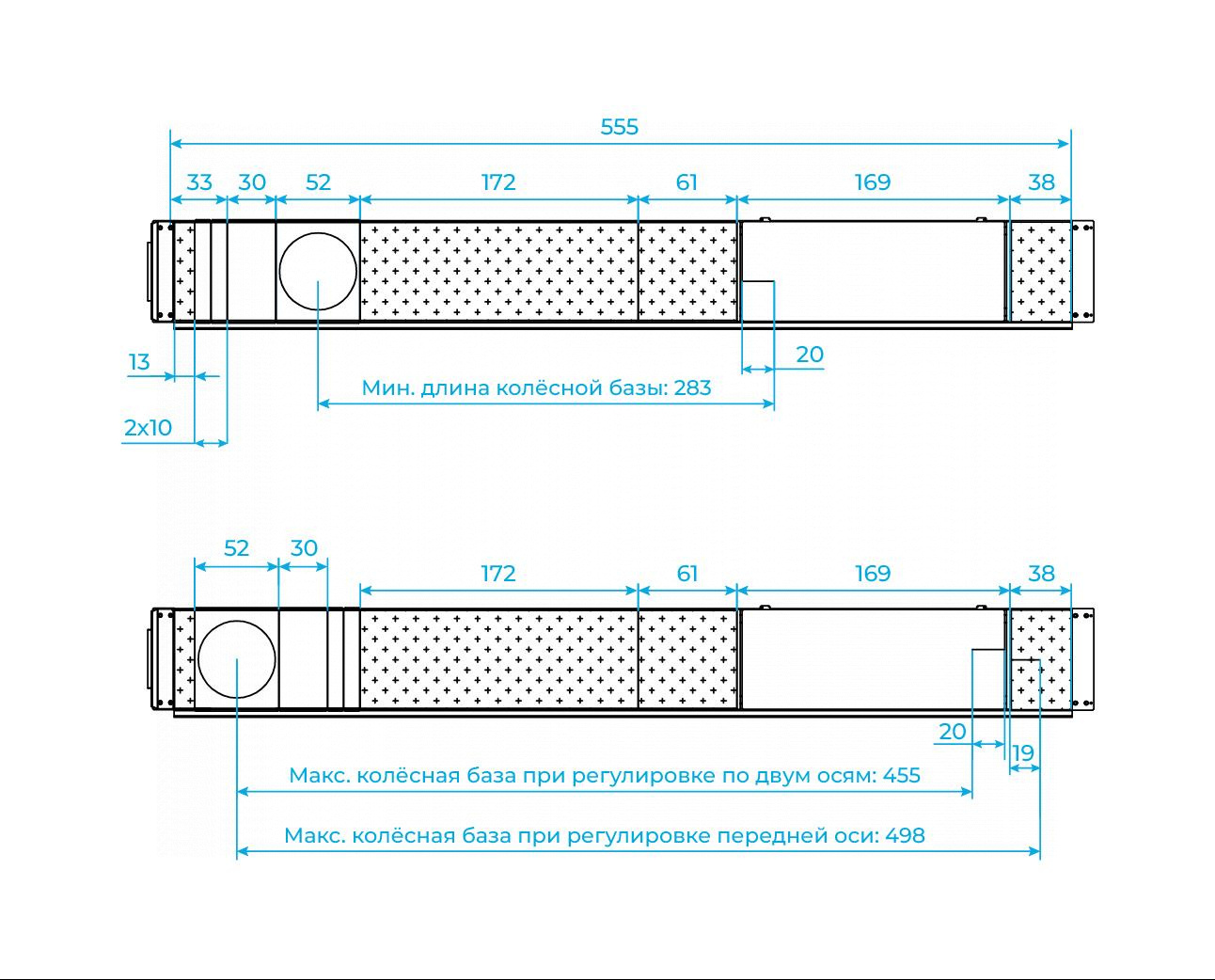 | Минимальная длина колесной базы, см | 282.5 |