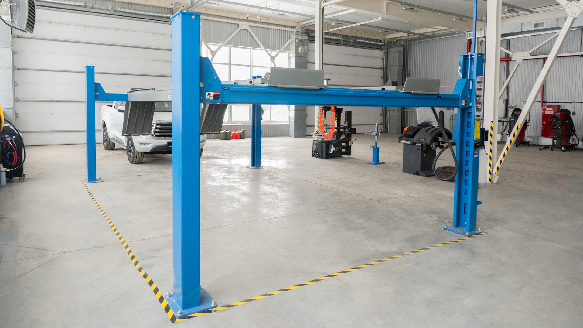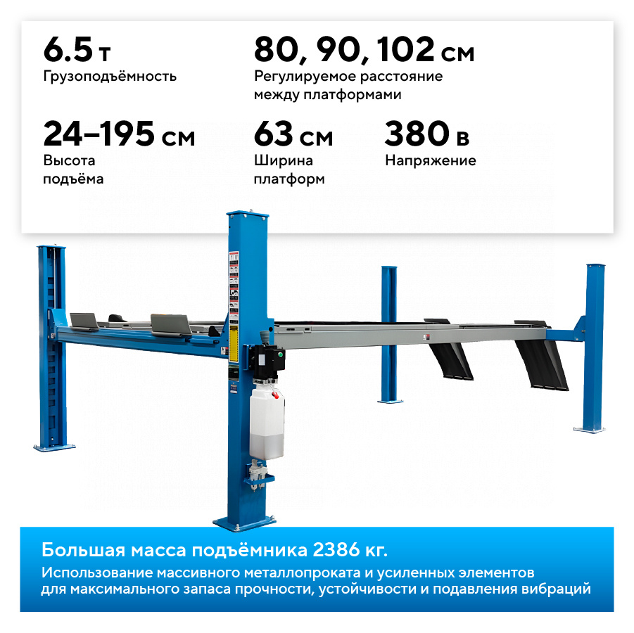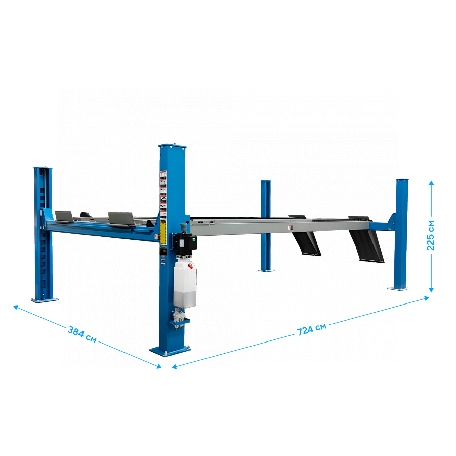 Подъёмник предназначен для диагностики, ремонта и регулировки углов установки колёс. Позволяет обслуживать автомобили с любой колесной базой — от компактных малолитражек до длиннобазных легковых автомобилей и легкого коммерческого транспорта.