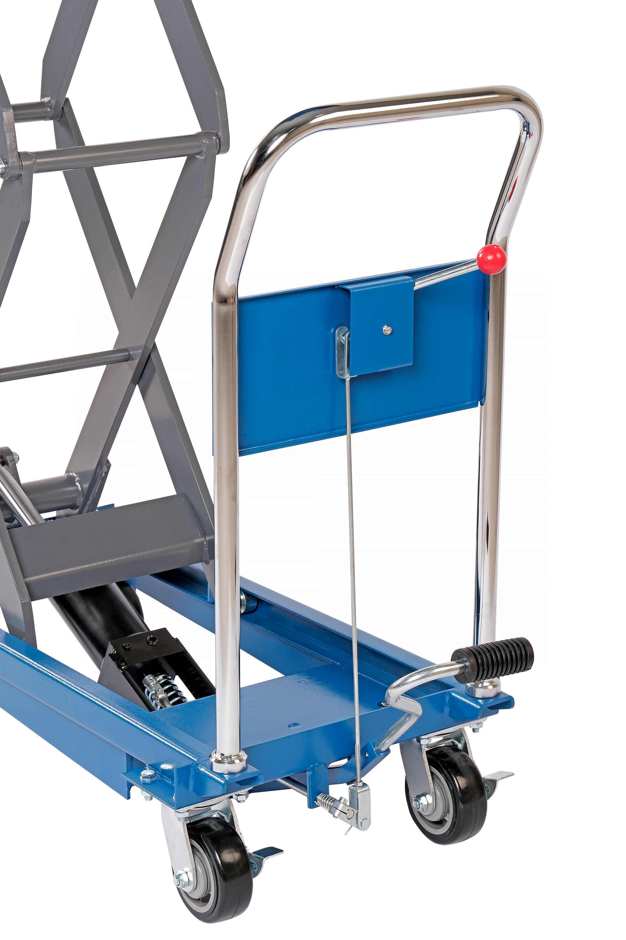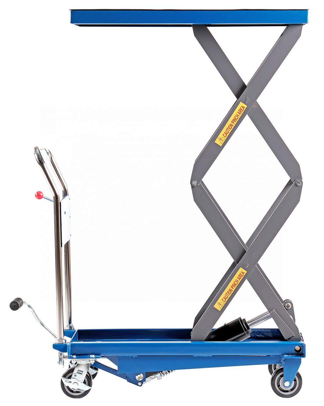 Платформенная тележка с подъёмным столом с ножным подъёмом совмещают в себе функции стационарных подъёмных столов и платформенных тележек: позволяют не только приподнимать грузы, но и перемещать их на расстояния. Тележки с подъёмным столом с ручным подъёмом мобильны, эффективны и надёжны.