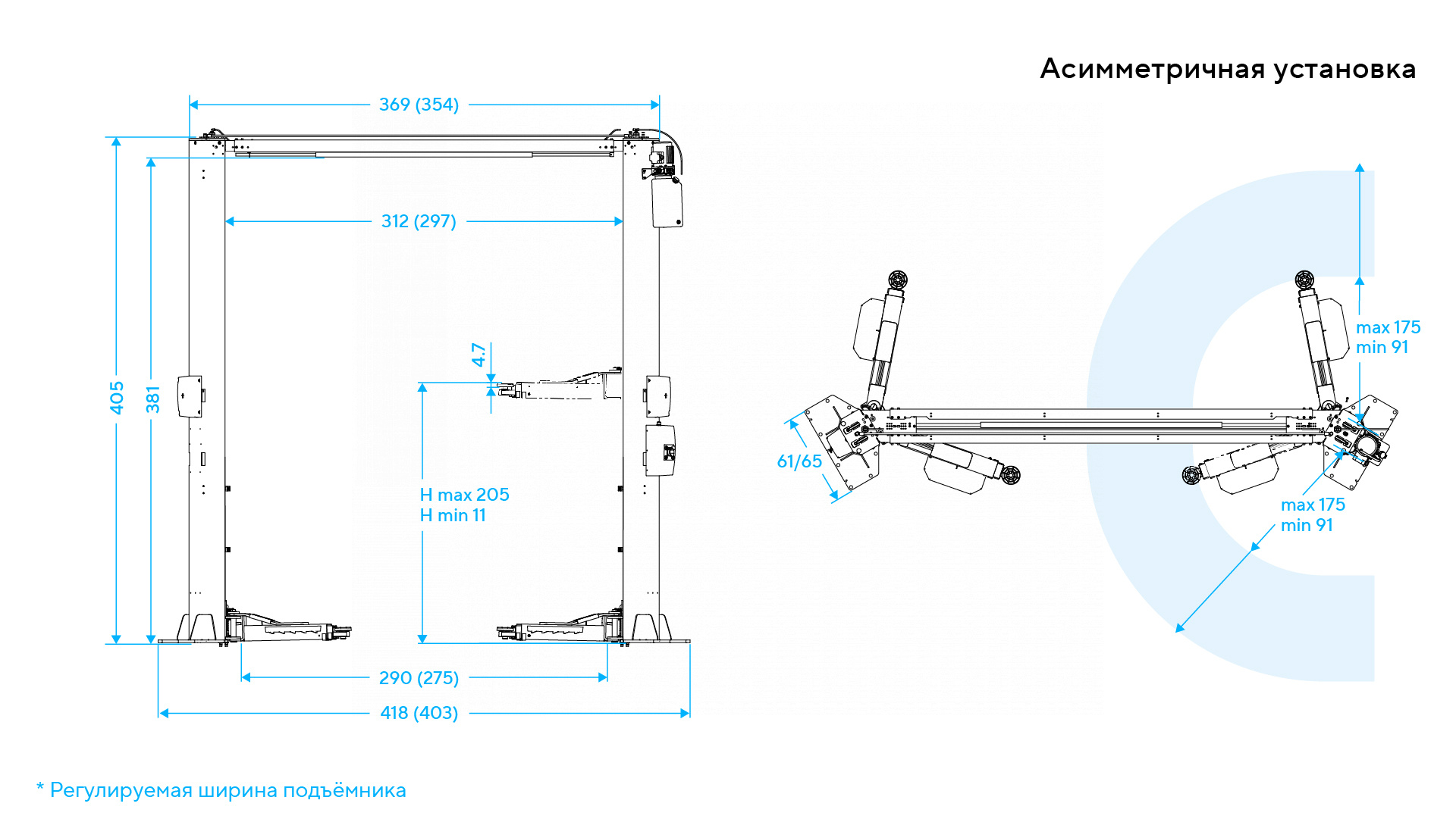 | Регулировка высоты подъемника | опция |