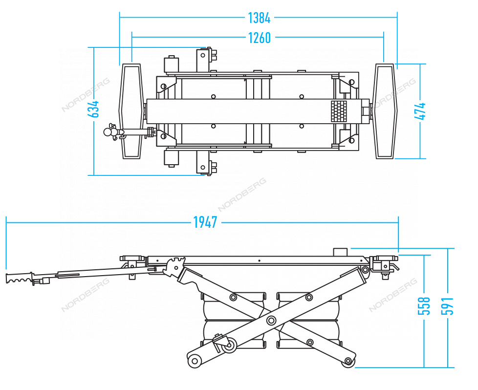 Подкатной подъемник ножничного типа NORDBERG N636-2,5 позволит эффективно выполнить большой спектр работ в кузовных цехах и детейлинг-центрах.