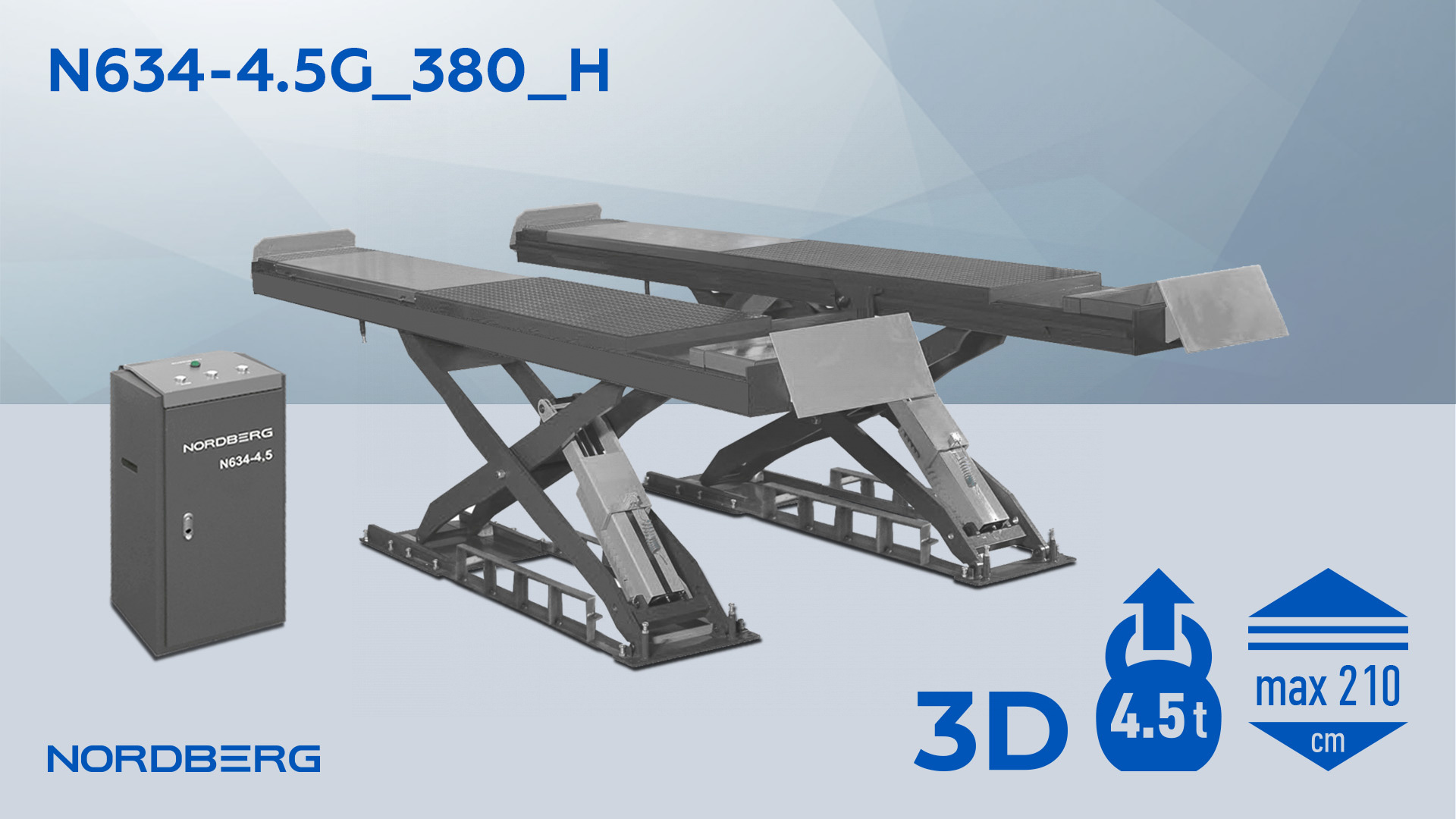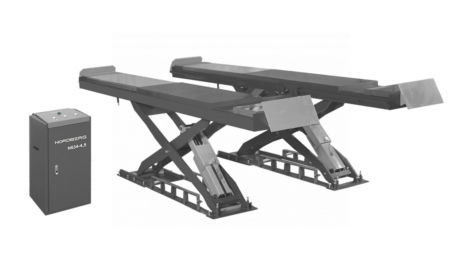 Ножничный подъемник для сход-развала NORDBERG N634-4,5G позволит максимально эффективно и быстро выполнить широкий спектр работ по шиномонтажу, диагностическому осмотру автомобилей, кузовному ремонту и пр.