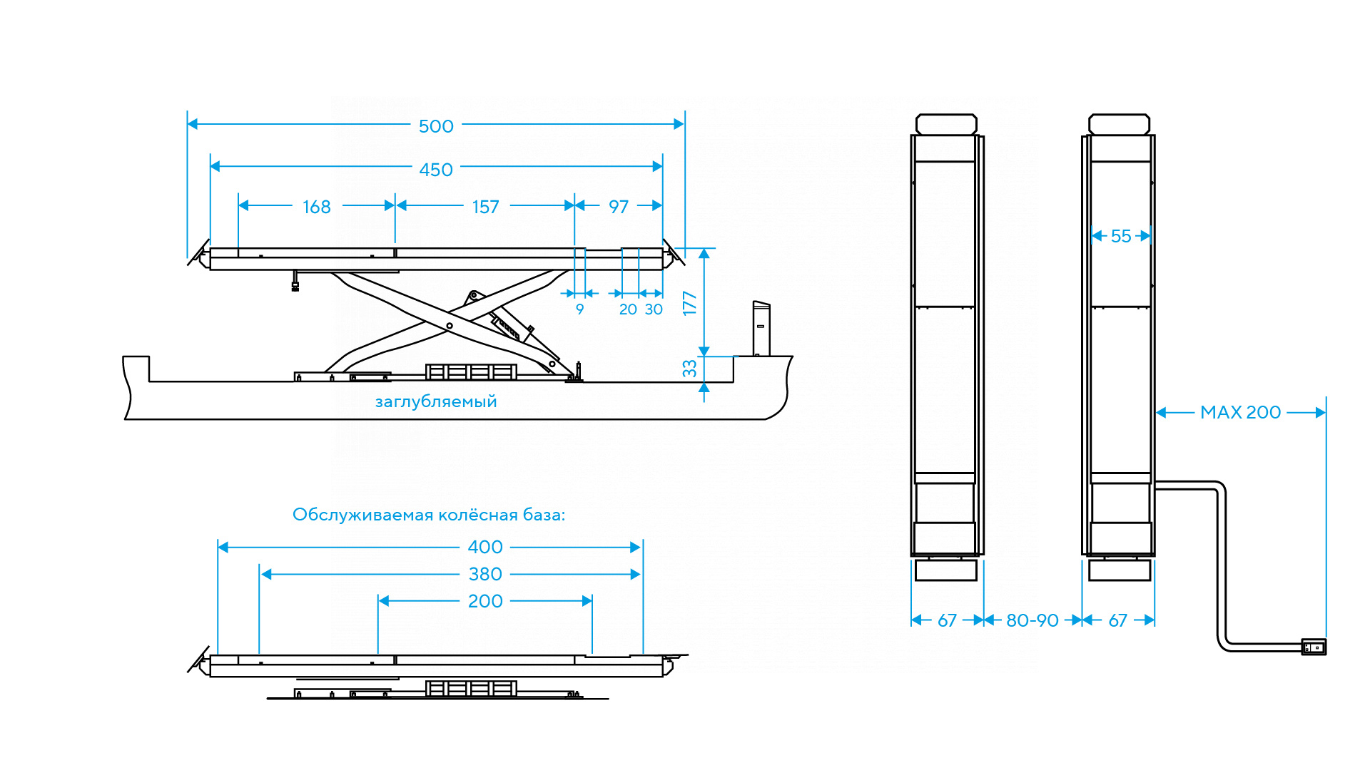 Высота подхвата подъемника и заглубляемая конструкция позволяют обслуживать автомобили с низким клиренсом.