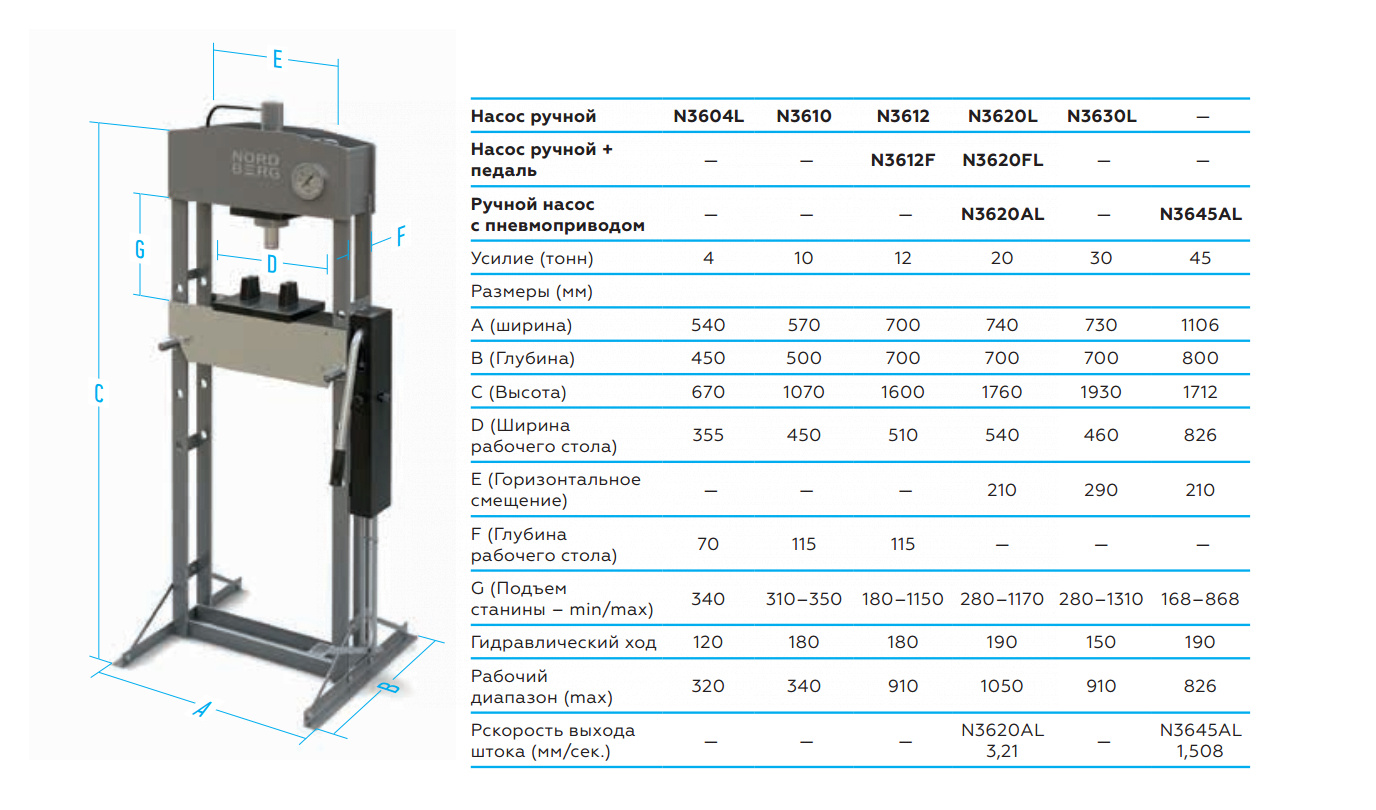 | Гидрвлический ход | 130 мм |