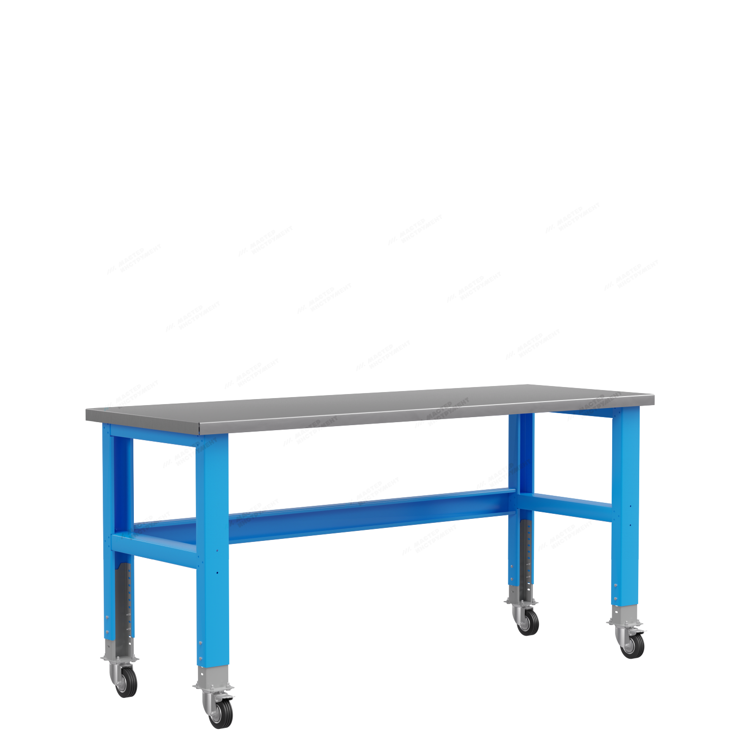 Дополнительно, изделия могут комплектоваться колесными опорами, перфорированными панелями, полками и держателями для инструментов.Конструкция опор позволяет производить регулировку по высоте от 800 до 1000 мм, что позволяет использовать подкатные инструментальные тележки «Верстакофф ®» серии 795. Сборный, усиленный каркас из профилированной листовой стали толщиной 1 мм, и столешница из листовой стали толщиной 2 мм, несут максимальную нагрузочную способность до 700 кг. Столы промышленные металлические окрашены порошковой краской.