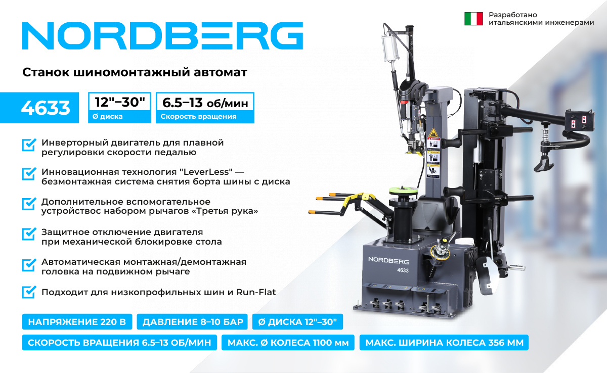 Шиномонтажный станок NORDBERG 4633 – идеальный выбор для профессионалов, стремящихся к максимальной эффективности и качеству в своем деле.