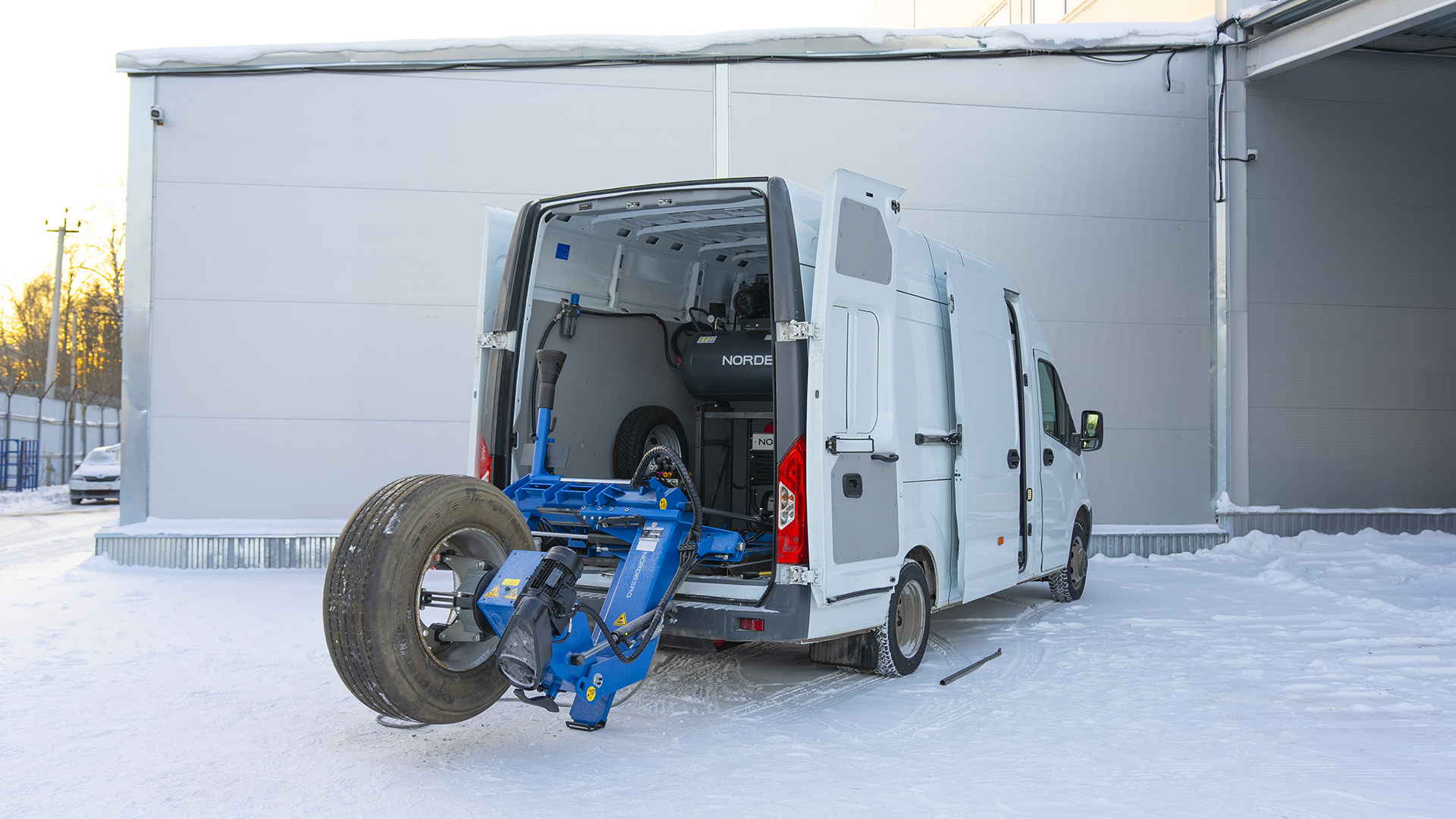 Станок устанавливается в передвижные шиномонтажные пункты, оборудованные в фургонах, соответствующих техническим требованиям.