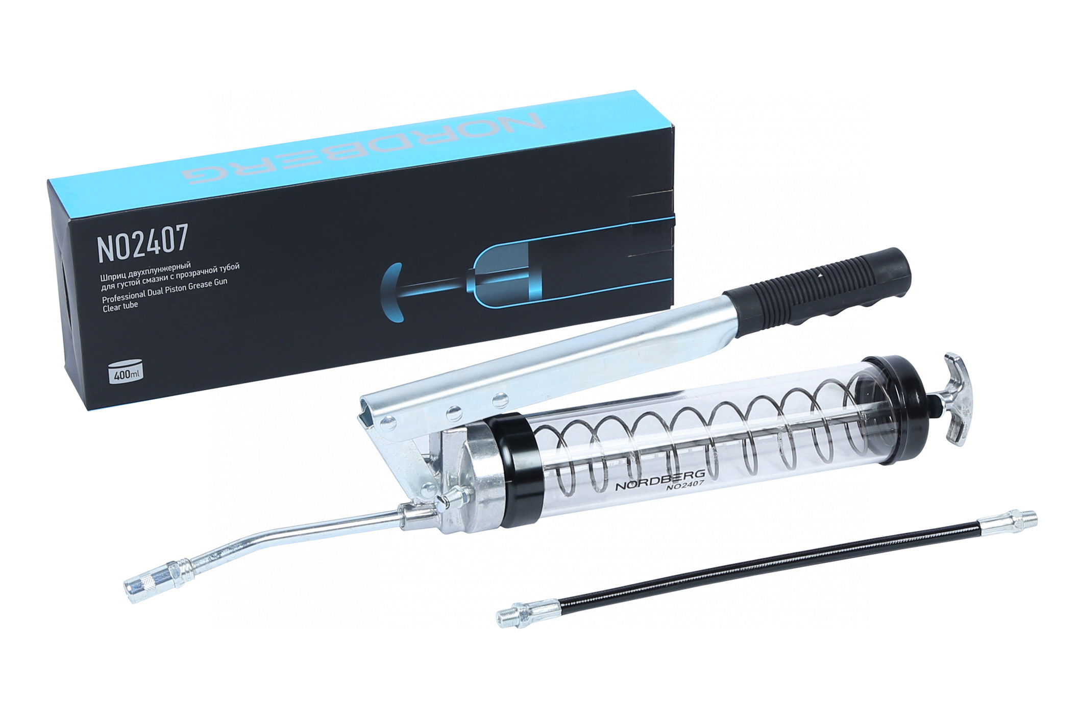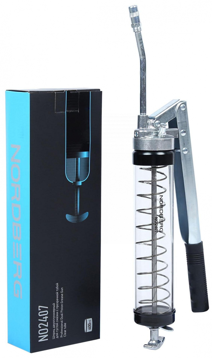 Шприц плунжерный с прозрачной тубой NORDBERG NO2407 прекрасно подходит для смазки деталей и механизмов в различных узлах, агрегатах, оборудовании и пр.