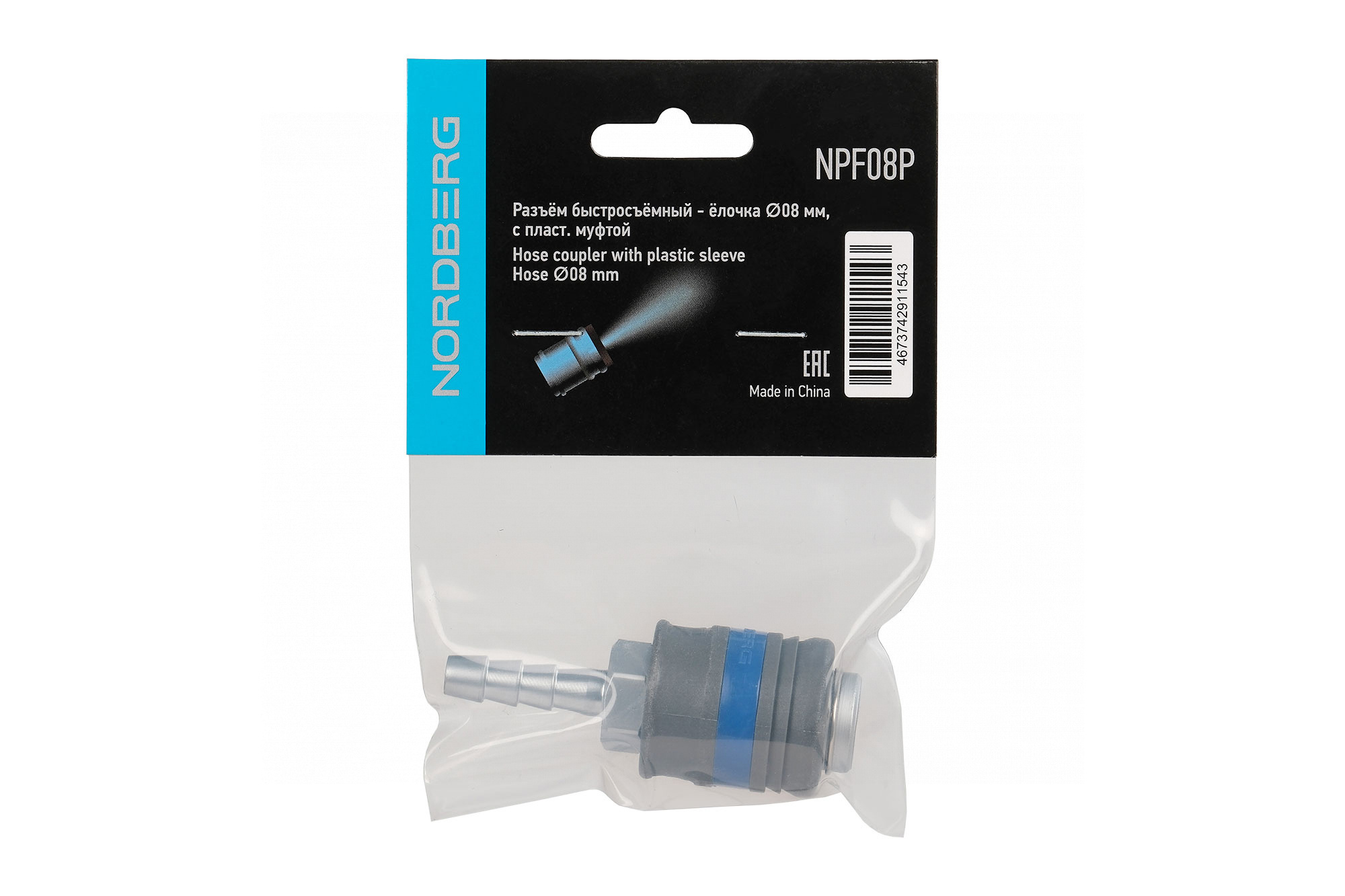 Разъем "мама" быстросъемный с пластиковой муфтой NORDBERG NPF08P с елочкой диаметром 8 мм.