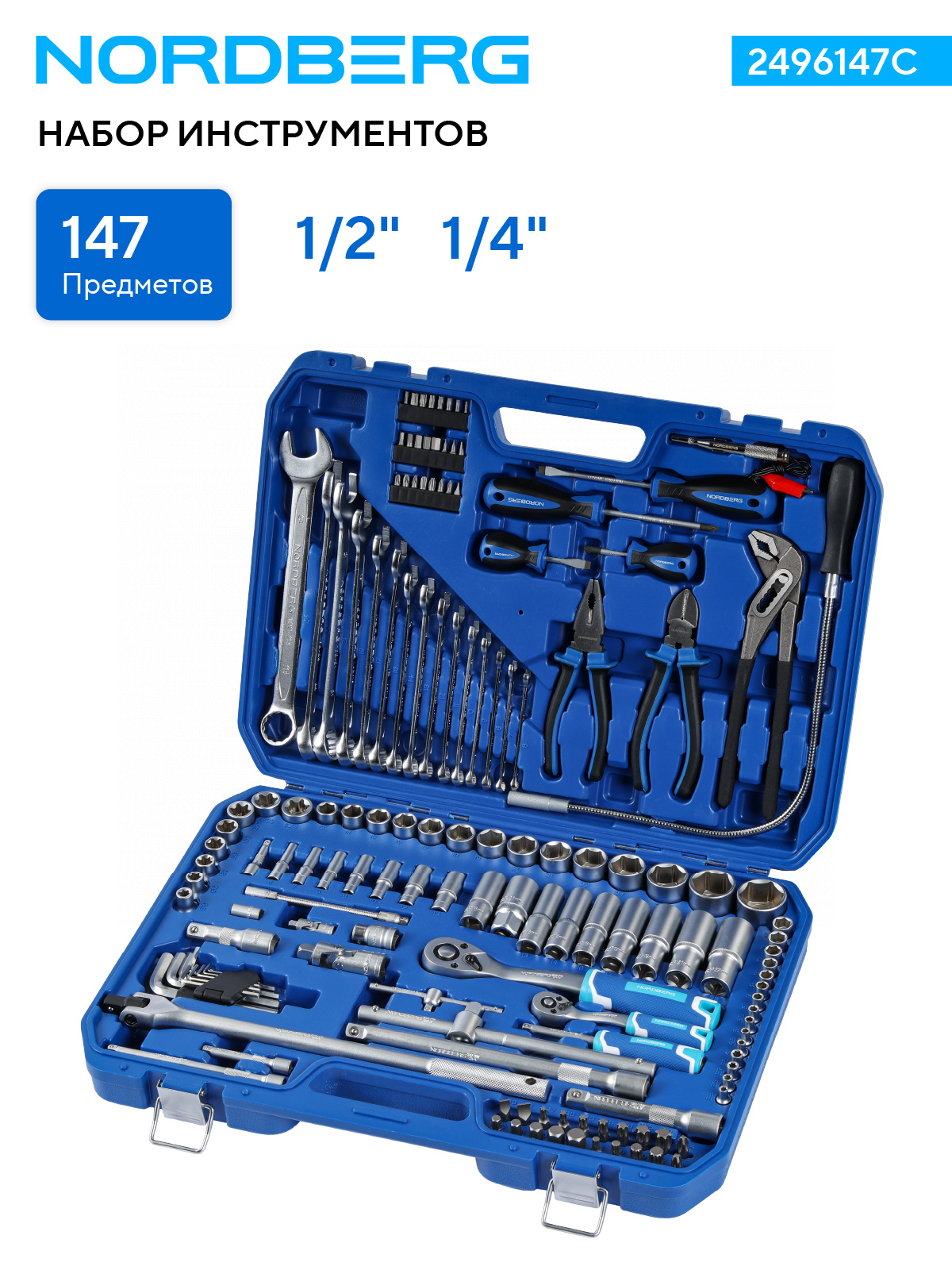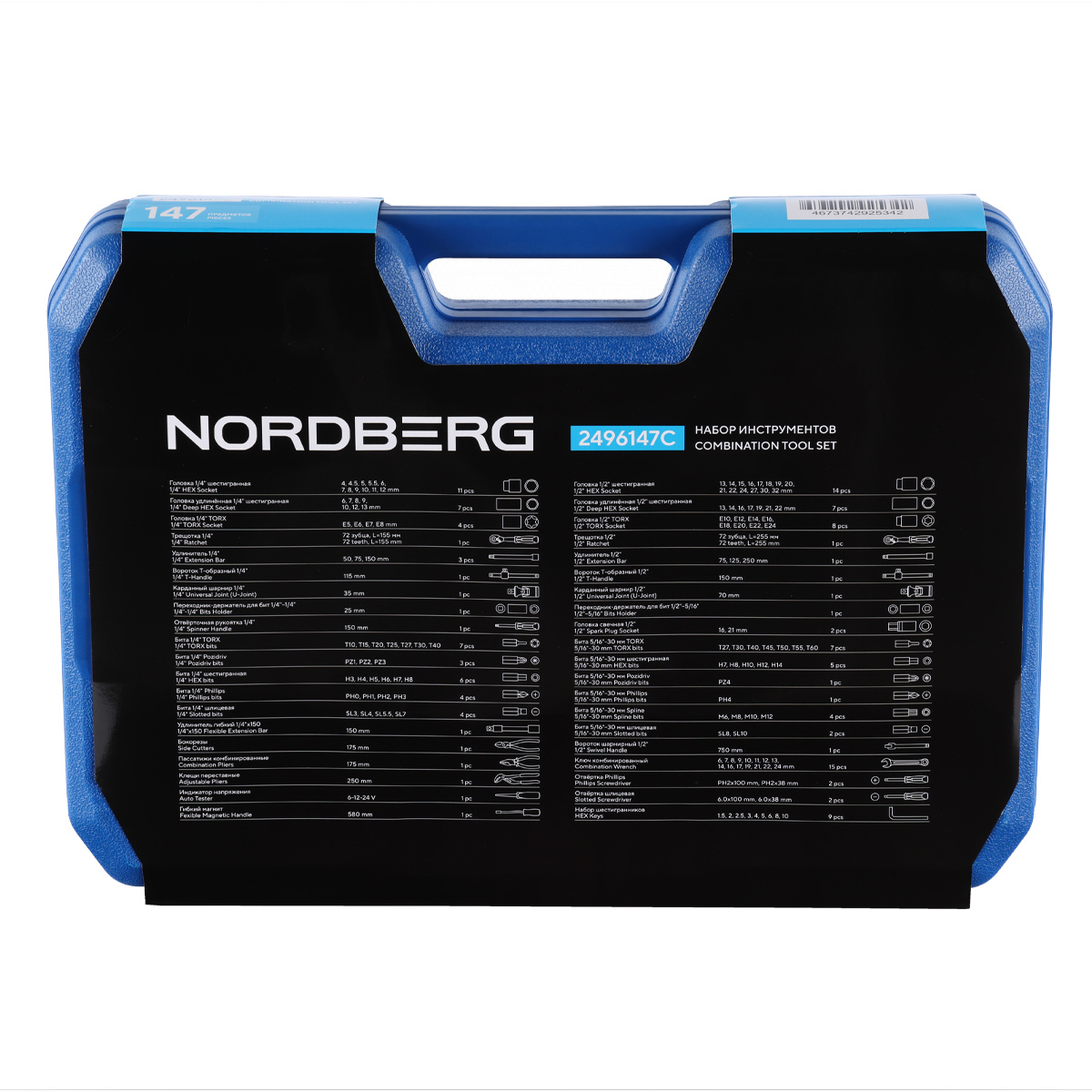 NORDBERG 2496147C — надёжный универсальный набор для профессионалов, идеально подходящий для автосервисов, СТО и гаражного использования.
