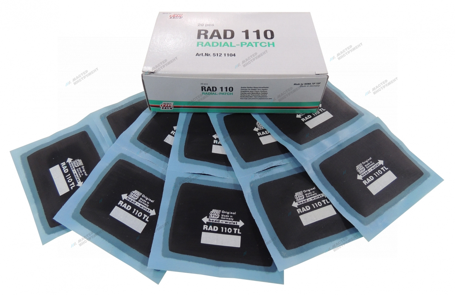 Набор пластырей кордовых для ремонта радиальных шин 110TL.(20шт) 55х75мм /1слой корда