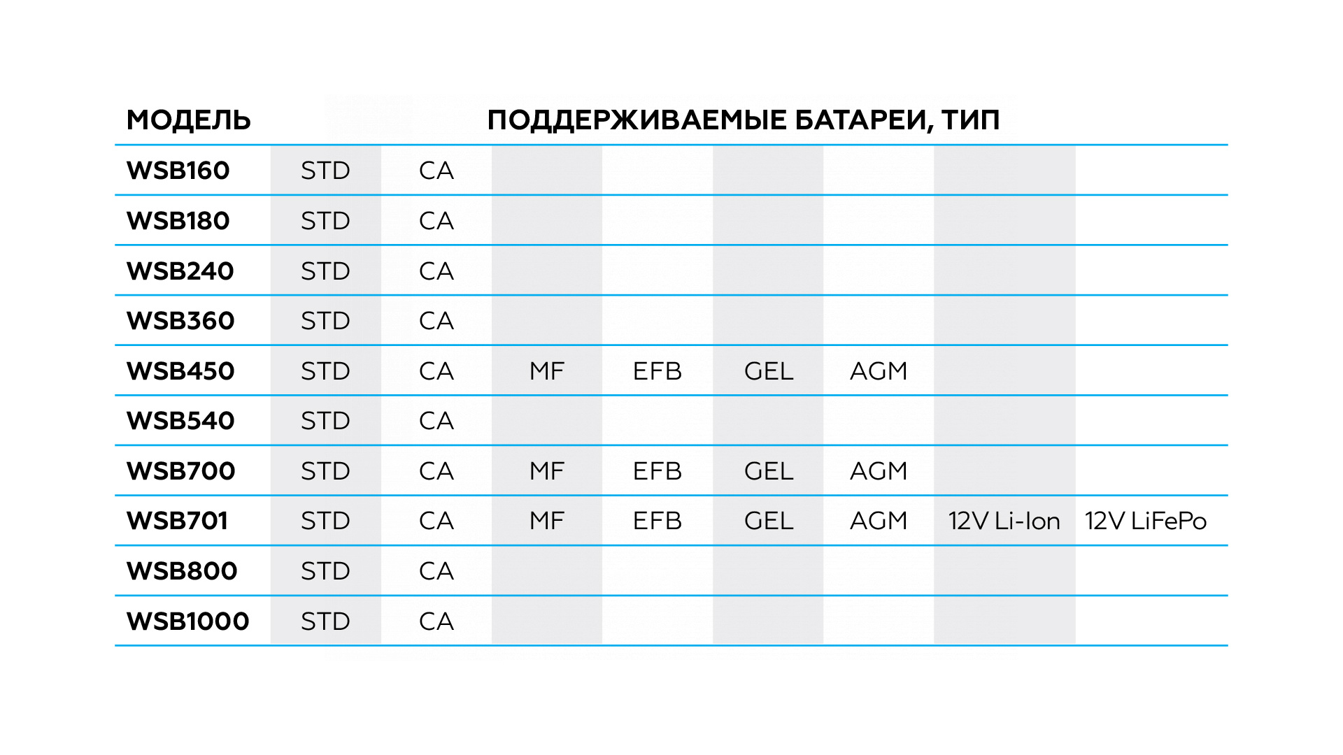 | Тип АКБ | WET, CA |